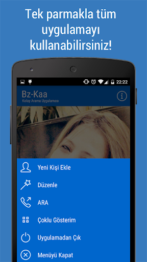 Kolay arama uygulaması ile daha önce belirlediğiniz kişileri tek tus ile arayabilirsiniz. Büyük resim ve isim ile yaşlı veya görme engelliler için kullanımı çok kolay bir uygulamadır. Ayrıca araç kullanırken favorilerinizi rahatlıkla arayabilirsiniz.
