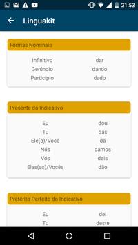 Conjugador Português is free and no ads app, it allows a quick and precise queries about Portuguese verbs, those found in the grammars, new verbs, or even invented verbs. It also allows choosing the spelling of the verb according to four different spelling rules: