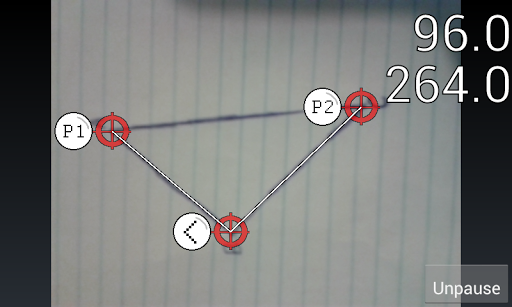 -Using the camera you are able to freeze an image, mark the end points and angle of an object to tell the angle created.