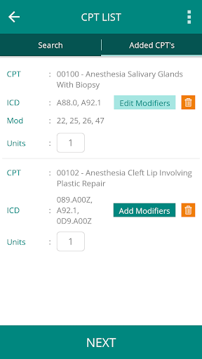 MedCubics CC'nin mobil uygulaması tüm şarj yakalamayı kolaylaştırır Ve fatura süreci, mevcut hasta listelerinizi çekmenizi kolaylaştırarak, prosedürlerinizi doğru bir şekilde kodlayın ve ücretlerinizi MedCubics uygulamasına gönderin.