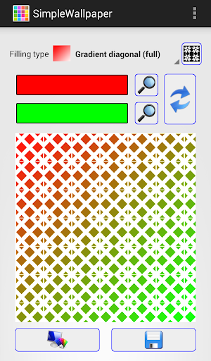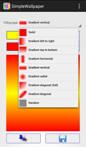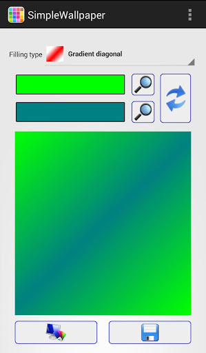 This app allows you to quickly create and apply a new wallpaper. You can save it as a single solid color or following combination of two colors: