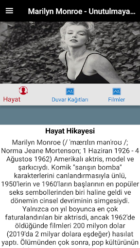Tüm hayat hikayesi ve filmleri. Film sanatçısı Marilyn Monroe'nun duvar kağıtları ve daha fazlası tek bir uygulamada