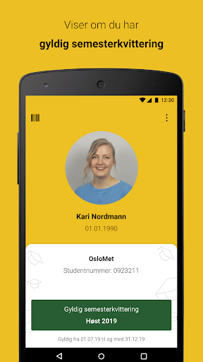 Norveç'te öğrenci olanlar için dijital öğrenci sertifikası.Uygulamanın, diğer şeylerin yanı sıra, Norveç'te ortak gemiler ve toplu taşıma şirketleriyle öğrenci sertifikası olarak görev yapar.Öğrenci sertifikasının geçerli olması için, size kayıtlı olmalısınız.