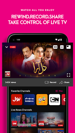 Zong TV, en sevdiğiniz canlı TV kanallarını izlemenizi ve zong verilerini veya Wi-Fi kullanarak ünlü dramas ve TV'yi izlemenizi sağlayan isteğe bağlı bir video akış hizmetidir. Haber, Müzik, Çizgi Film ve Eğlence'den 40 canlı TV kanalını keşfedin. Haber manşetlerini izleyerek haberdar olun ve istediğiniz yerde, istediğiniz zaman, sadece Zong TV'de istediğiniz yerde geçirdiğiniz eğlence kanallarını izleyin.
