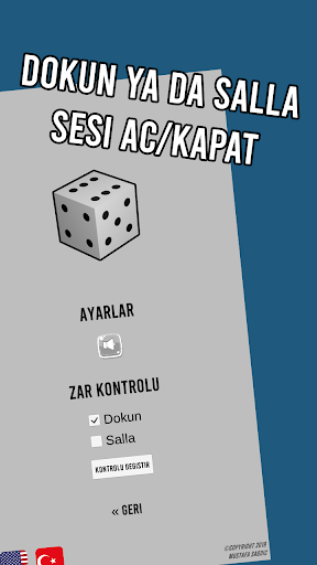 • Ekrana dokunarak (rastgele hız) ya da telefonunuzu sallayarak (sallama hızınıza göre) zar atabilirsiniz.