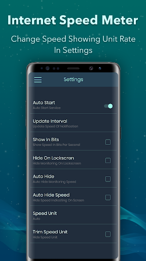 Internet Speed Master is also test Network speed test - check real time network speed in status bar; Data Meter - monitor and keep records of internet data usage.
