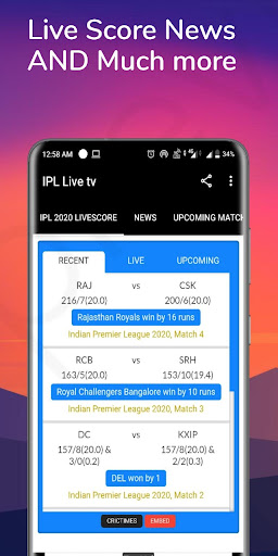 Hello Everyone Welcome to IPL -Indian premier league (Live Score) app. In This app you contain information about. IPL 2021-indian premier league (Live Score) app is complete package for all Cricket Vivo IPL Cricket Fans.