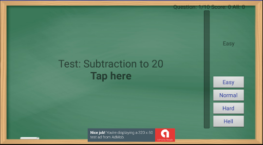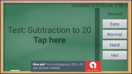 Subtraction to 20 allows to test the child with different levels of complexity which differ in time necessary for search of the correct answer. If time expires, then the point is subtracted, one it is all the same necessary to answer a question. Thus the learning effect is reached, the child shall give to at least 80% of the correct answers at each level of complexity to reach automatism in the score.