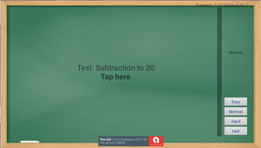 The application is designed to test knowledge by adding the table to 20 (the math test for kindergarten on the subtraction of the numbers up to 20).
