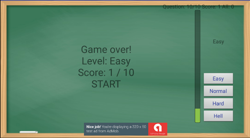 - At the end of the test shows information about the level of complexity and accumulated points;