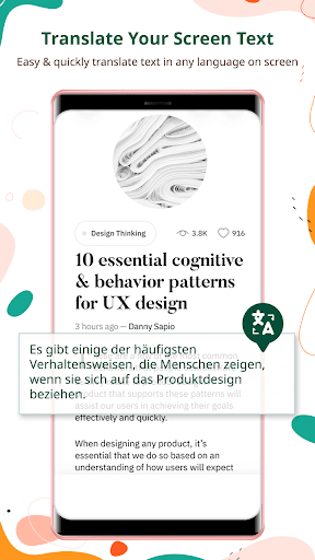 - Tercüme edilmiş metni almak için ekran tercümanı yüzer düğme ekranını hareket ettirin.