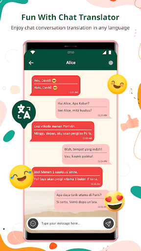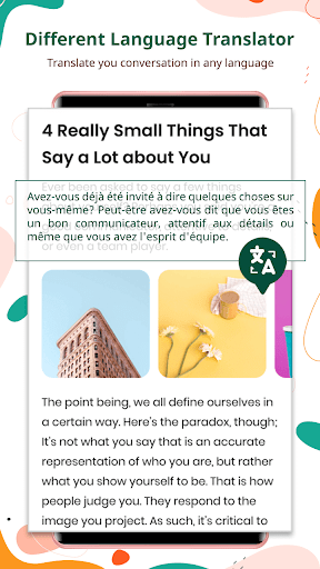 Bu hızlı dil tercümanı kullanarak yeni arkadaşlar yaratabilir ve onlarla sohbet edebilirsiniz. Messenger için sohbet tercümanı, istenen dillerde yeni arkadaşlarla sohbet etmenize yardımcı olacaktır. Bu uygulama hızlı bir dil tercümanıdır.