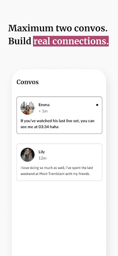 KALİTE MİKTARIN ÜZERİNE KALİTE YAPIYOR. Doğru insanlar, böylece gerçek bağlantılara yol açan anlamlı konuşmaları eğlendirirsiniz. Bu nedenle, kullanıcıların aynı anda konuşabileceği insanların miktarını sınırlıyoruz.