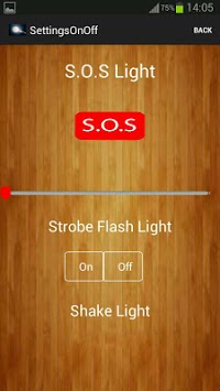 simple to use this app once you downloaded the app install it open you will see flashlight torch press on the middle there is button tap it and it will light press back again turn off on the there the settings button will will take different flashlight features there the S.O.S flash there as well the adjustment light you adjust to preference and the last feature is the shake device you the device it will turn on/off by shaking the device so enjoy this free app make rate it