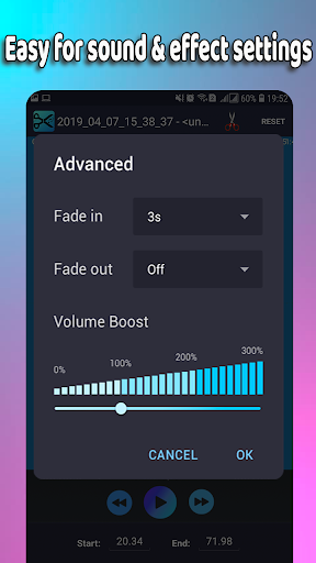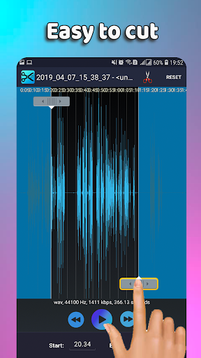 Ses şarkınızın en iyi bölümünü kesin ve zil sesi / alarm / müzik dosyası / bildirim tonu olarak kaydedin. Kesik sonuçları "/ MNT / SDCard / Media / Ses" de saklanır.