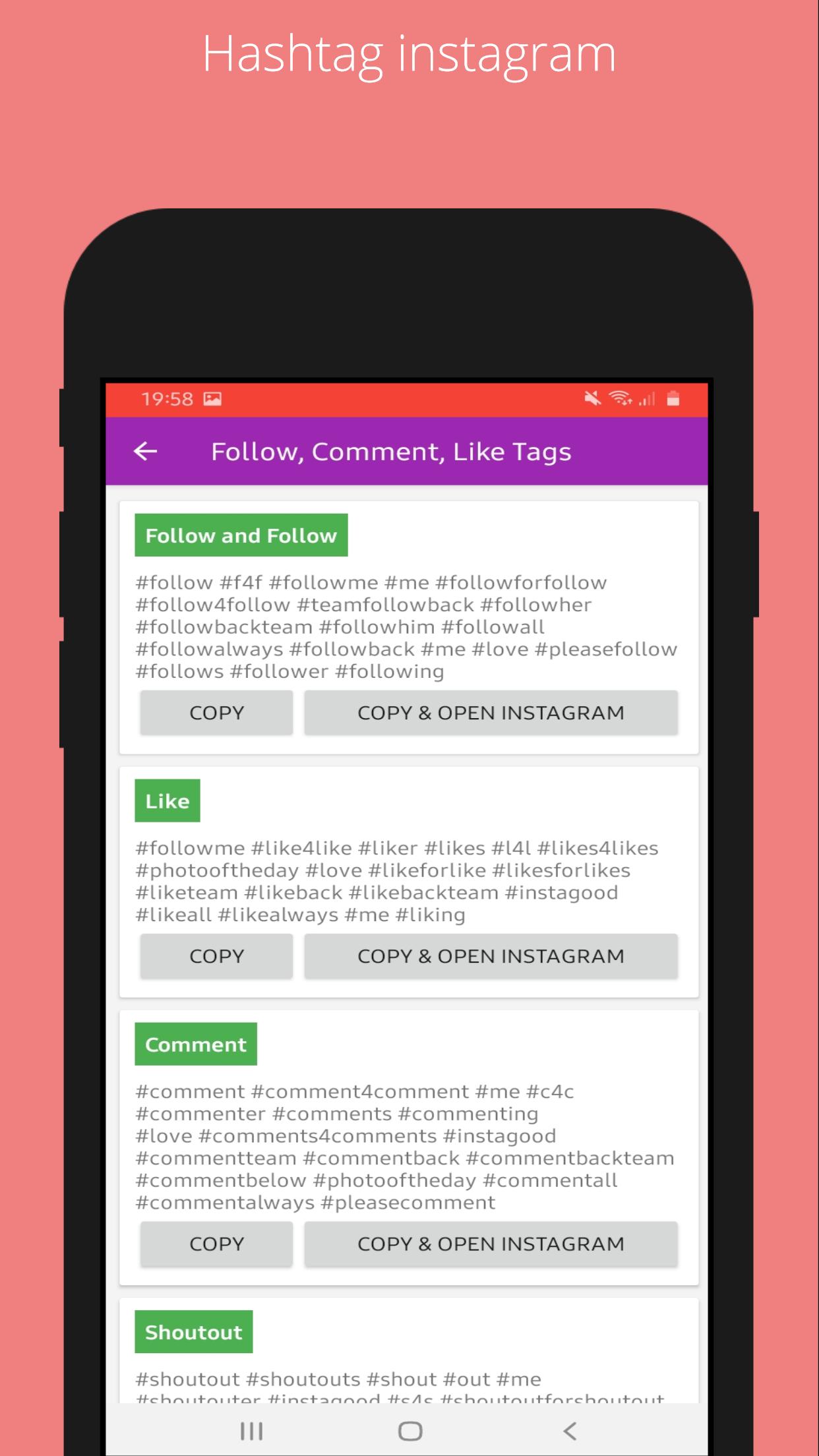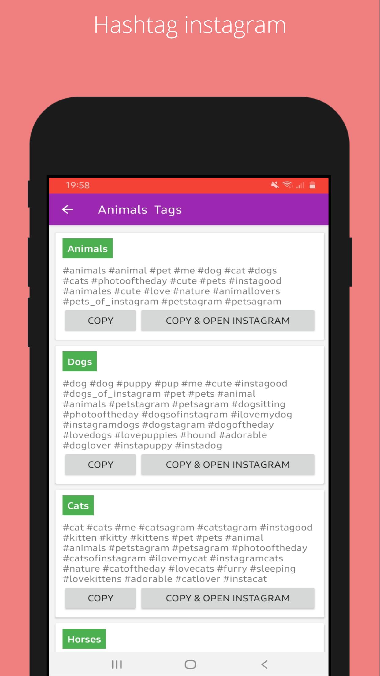 -Always fresh Instagram tags.