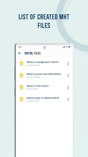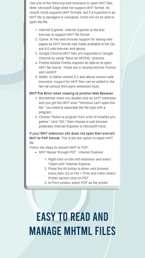 * Cihazınıza kaydedilen tüm MHT/MHTML dosyalarını görüntüleyin