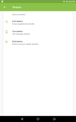 • Hızlı veya tam dosya sistemi taramaları; ve kullanıcı tarafından belirtilen dosya ve klasörlerin özel taramaları.
