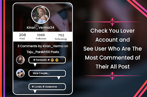 You can keep watching you Lovers or Friends account activities like what they liked or commented on other post, who most liked, commented on your lover/friends account, get all details about their post and account. From this app you can check anythings about any instagram account in details.