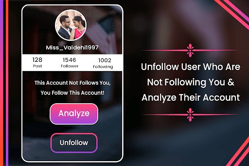 Using this insta analyzer app, you can get all follower that aren't follow back you, and also remove that people from this app. You can login and analyze multiple account.