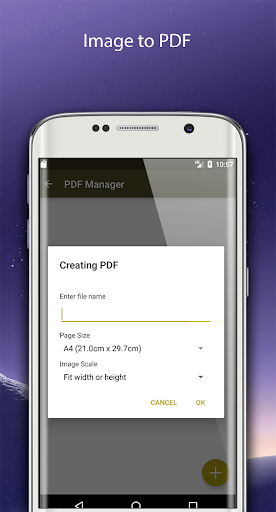 you can also do it via phone library with the need of a camera and you can convert images to pdf with different sizes