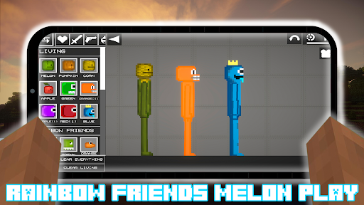 Burada Rainbow Friends'teki tüm karakterleri .Melon dosya biçiminde bulacaksınız, bunları manuel olarak Melon Oyun Oyunu'na aktaracaksınız (şimdiye kadar Melon Does DoesOtomatik yüklemeyi desteklemeyin, bu nedenle uygulama yüklemeden sonra dosyaları açar ve bunları oyun klasörüne kendiniz taşımalısınız, talimatlar nasıl ayrıntılı olarak açıklanır)