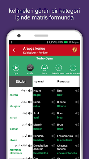 Arapça'yı İngilizce, İtalyanca, İspanyolca, Fransızca, Hollandaca, Portekizce, Türkçe, Swahili, Endonezyaca, Danca, Bengalce'den ses, fonetik, resim ve oyunlarla öğrenin ve konuşun.