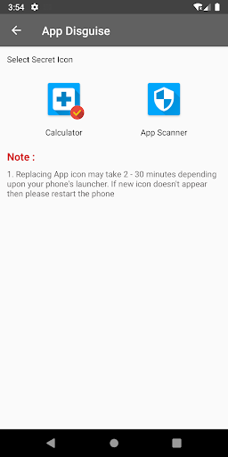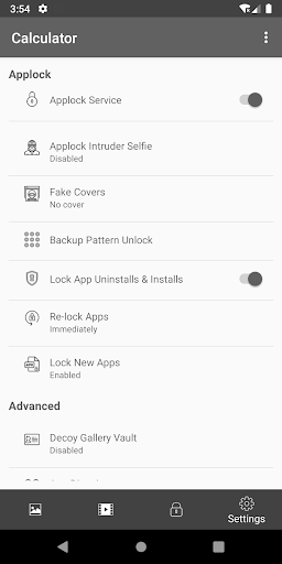 : Hesap makinesi AppLock & Media Vault ve Applock olabilir Cihaz Yöneticisi İznini Kullanarak Kaldırma Girişimlerine Karşı Korunma.