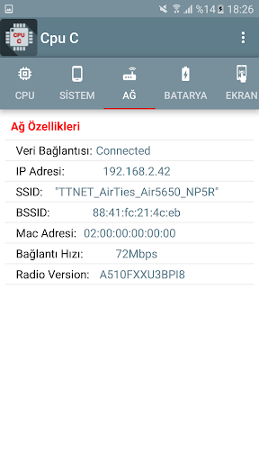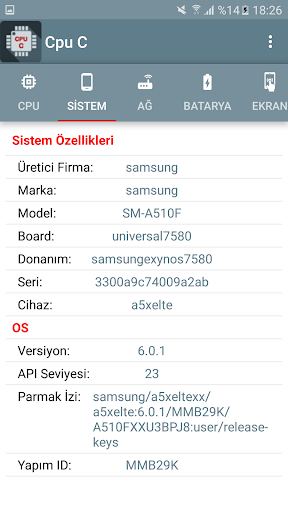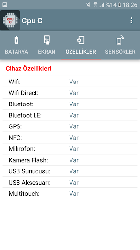 -Sistem özellikleri:wifi,nfc,bluetoot,gps,tv,vb.;