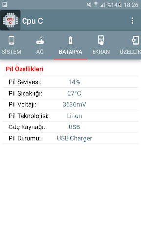 - Batarya bilgileri: seviye, durum, sıcaklık, kapasite;