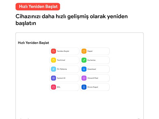- Sistem Kullanıcı Arayüzünde (System UI) Cihazınızı Hızlı Bir Şekilde Yeniden Başlatır