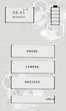 A clean and classy, responsive Go Locker theme that provides an elegant design for your Lock Screen.The Geometric Lock theme display of battery and time,date information with very clean interface and provides shortcut for directly reach to message,phone and camera.