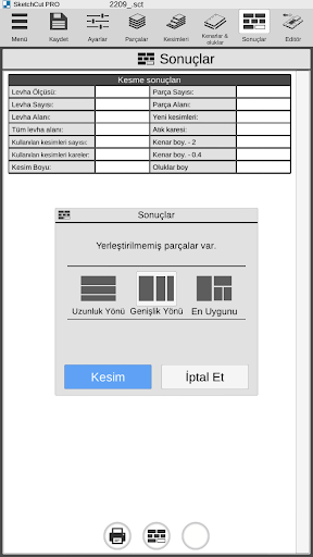 - Parça listelerini ve kesim ölçülerini Android cihazınızda saklayabilme;