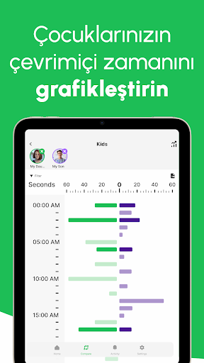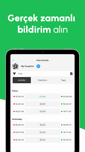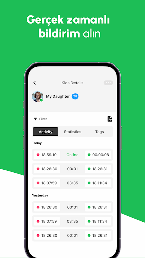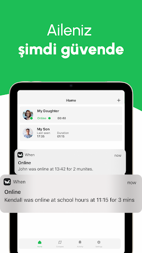 Çocuklarınızın güvende olduğundan emin olmak ister misiniz? Yoksa mesajlaşma uygulamalarına ne kadar zaman harcadıklarını kontrol etmek mi istiyorsunuz? Anlık bildirimler ile çevrimiçi/çevrimdışı etkinliklerini gerçek zamanlı olarak izleyin.