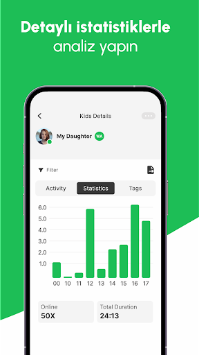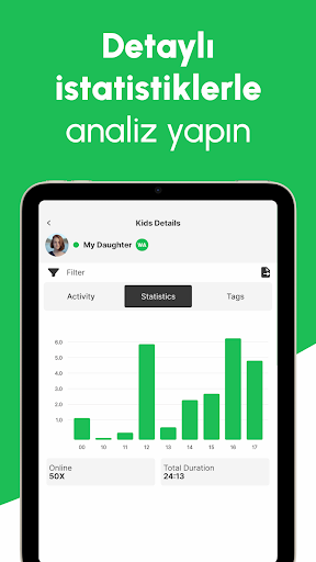 Bir uygulama ne zaman çocuklarınızın mesajlaşma uygulamalarında harcadığı çevrimiçi zamanı takip etmenize yardımcı olmak için tasarlanmıştır. Çevrimiçi olduklarını ve ne zaman çevrimdışı olduklarını takip etmenizi sağlar. Ayrıca, ailelerin çocuklarının çevrimiçi olarak geçirdiği zamana göre ayrıntılı istatistikleri görmelerini sağlar. Ekstra güvenlik önlemleri ile tasarlanmış bir uygulamadır, böylece çocuklarınızın güvenli bir şekilde çevrimiçi olduğundan emin olabilirsiniz. Ailelerin çocuklarının çevrimiçi zamanını yönetmelerine yardımcı olur ve mesajlaşma uygulamalarına güvenli bir şekilde harcadıkları zamanın önemini vurgularken sunulan olanaklar.