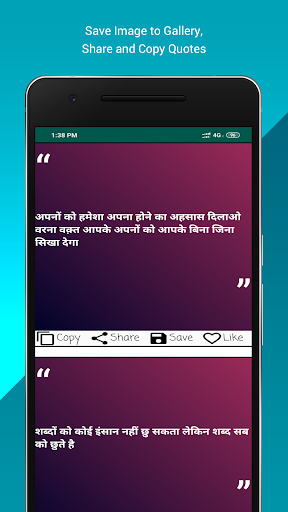 Best Quotes app contain more than 10000 quotes from multiple categories like Attitude,Confidence,Family,Failure,Friendship,Life,Patience,Be Positive,Respect,Sad,Trust and Hindi Quotes.