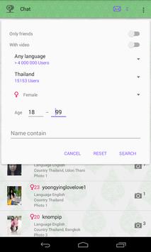 You will be able to search users you would like to talk with by region or language.