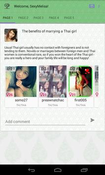 This app was created for those who want to have a chat, friendship and love with Thai girls, for those who would like to make a dating or marry an Thai girl and don't where to start, or just want to know more about Thailand and its traditions. In app are already registered thousands of girls from Thailand with profiles and photos. App is designed to connect people for the purposes of dating, relationships and marriage with female from Thailand. Primary focus of this app is to answer the questions where to meet the Thai girl and advices on what to do to make your acquaintance grew into something more. It's like a step by step instructions from the first meeting and dating with Thai girl till the marriage and happy life after they get married. Thai women are very nice, kind and beautiful, and the main purpose of this application is to open up to you the secret of seduction and marriage to a Thai girl.