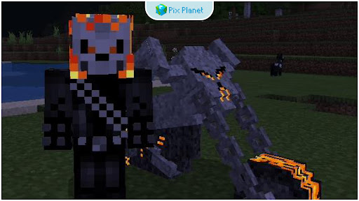 Minecraft PE için Ghost Rider Mod - Kötülükle savaşan bir karakter ekler ve çok havalı bir motosiklet sürmektedir.