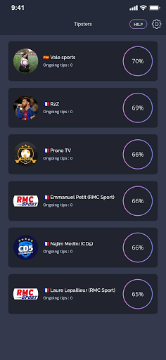 The app classifies tipsters according to their success rate on past matches and measures their expertise according to the team and the league. For each game, the app user can access the best forecasts in just a few clicks, saving the bettor long hours of research and analysis.
