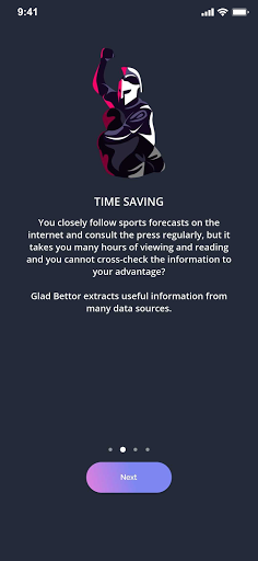 The Glad Bettor app aggregates and processes forecasts from more than 60 sports betting information sources around the world.