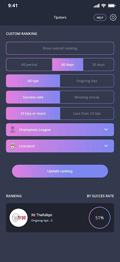 • Real-time ranking of the best tipsters