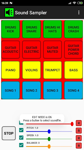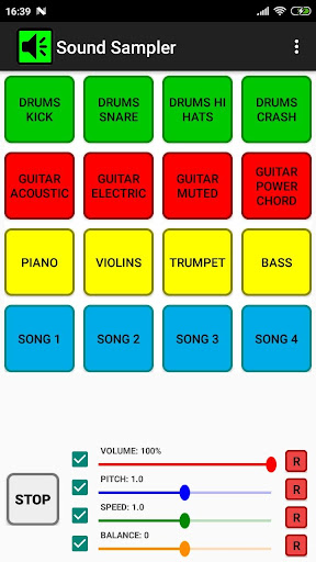 Ses örnekleyici, sesleri çalmak için bir ses tahtası uygulamasıdır. Sesler özelleştirilebilirdir ve cihazınızın depolanmasından veya çevrimiçi olarak medya dosyalarından (ses veya video) seçilir. Kendi eşsiz ses tahtasını oluşturabilirsiniz. Farklı oyun seçenekleri için farklı düğmeler vardır ve ses hacmini, dengesini, perdeyi ve hızını kontrol edebilirsiniz. Ayrıca dosya kırpma ve sol / çıkış / çıkış / çıkış ve ping pong gibi etkiler mevcuttur.