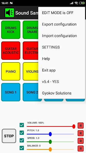 Master hacmi, perde ve hız kontrolleri aynı anda tüm sesler için kontrol hacmi, perde ve hız. Kontrolleri Ayarlar - Kontroller'de gizleyebilir / gösterebilirsiniz.