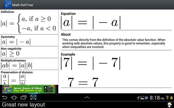 Math Ref Free is a half the size and none of the price of Math Ref full. Get a sample of this comprehensive list of equations and more at your finger tips.