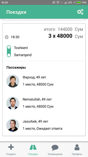 Приложение для поиска попутчиков для совместной поездки из города в город.