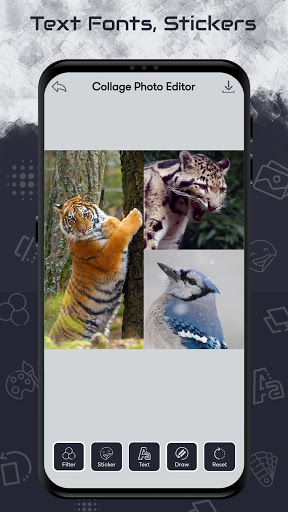 - Fotoğraf çerçevesi ile, cihazınızdaki fotoğraflardan sınırsız harika fotoğraflar oluşturabilirsiniz. - Birkaç muslukta hızlı bir şekilde kolajlar oluşturun . Kolayca sosyal ağlar aracılığıyla arkadaşlarınız ve akrabalarıyla anında paylaşmak için kolayca güzel bir kolaj oluşturun.