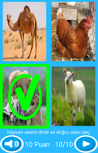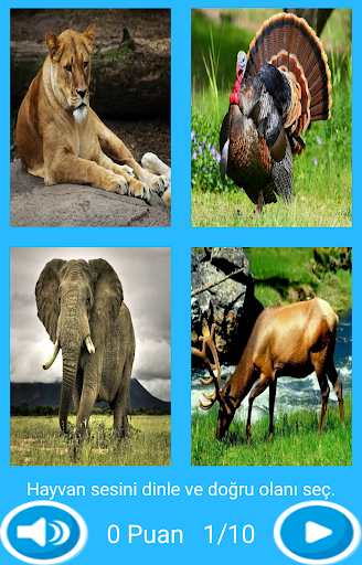 Bu uygulama çocukların gelişimlerine katkıda bulunulması için geliştirilmiştir. Çocuklar hayvanları ve çıkardıkları sesleri tanıyarak öğrenirler. Uygulama iki bölümden oluşmaktadır. Birinci bölümde çocuklar hayvanların resimlerini, seslerini ve isimlerini öğrenirler. İkinci bölümde ise 10 sorudan oluşan 4 seçenekli bir test yapılmaktadır. Her soruda hayvan sesi dinlenmekte ve doğru olanın seçilmesi istenmektedir. Sınav sonunda 100 üzerinden puan alınmaktadır.
