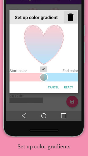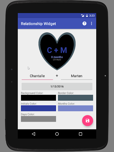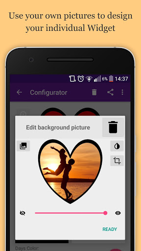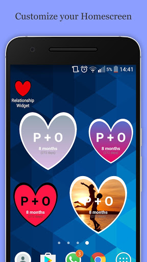 This is a simple way for People in love to customize their homescreen and to let their relationship take part in their Android device. Furthermore you're able to set up push-notifications on your monthly and/or yearly relationship- anniversary.