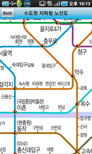 4.노선도의 멀티 터치 기능으로 수도권,부산,대구,광주,대전의 노선도를 확대 축소 하여 보고 최단경로 탐색기능및 도착정보를 바로 확인 할 수 있습니다.
